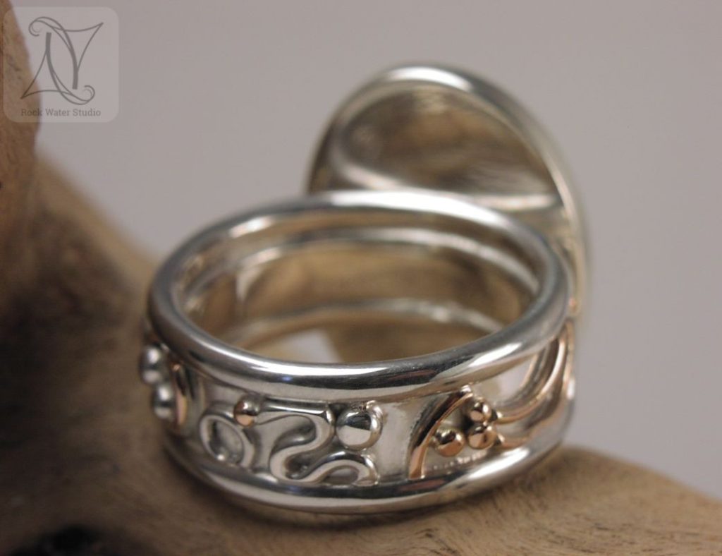 Custom made for a lady, inspired by some of the ring designs I’ve made before. Browsing through my gallery of gemstones, she instantly fell in love with this Moss Agate. It’s as if you can step into the secret forest inside.