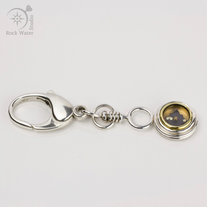 Solid silver carabiner allowing you to clip your compass creation to a keychain, belt loop or backpack. Hand finished with all joints soldered.